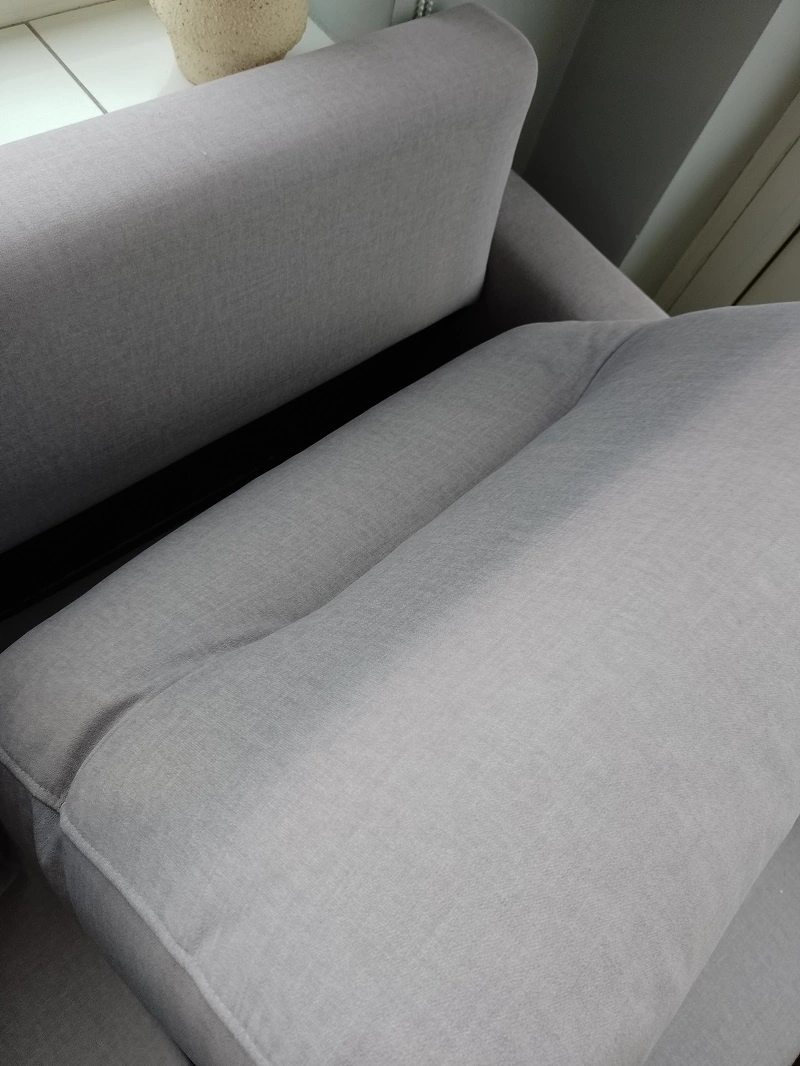 UWAGA!! Mebel posiada delikatne przebarwienia na tkaninie od słońca w tylnej części oraz na poduszkach.