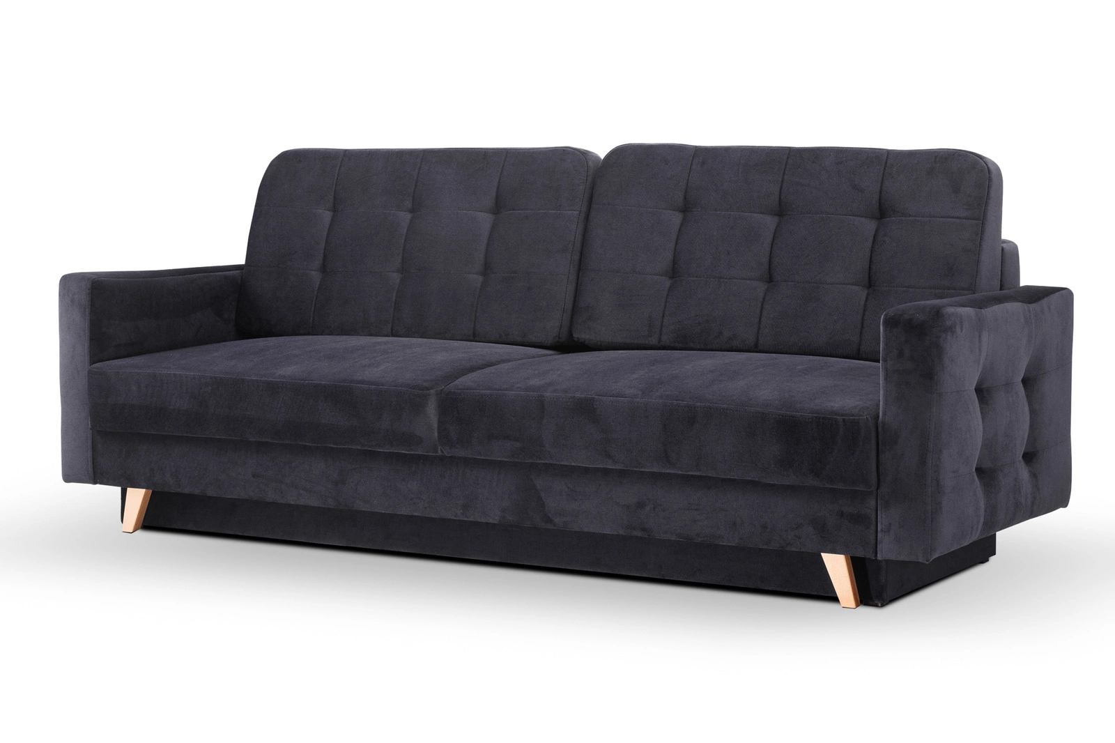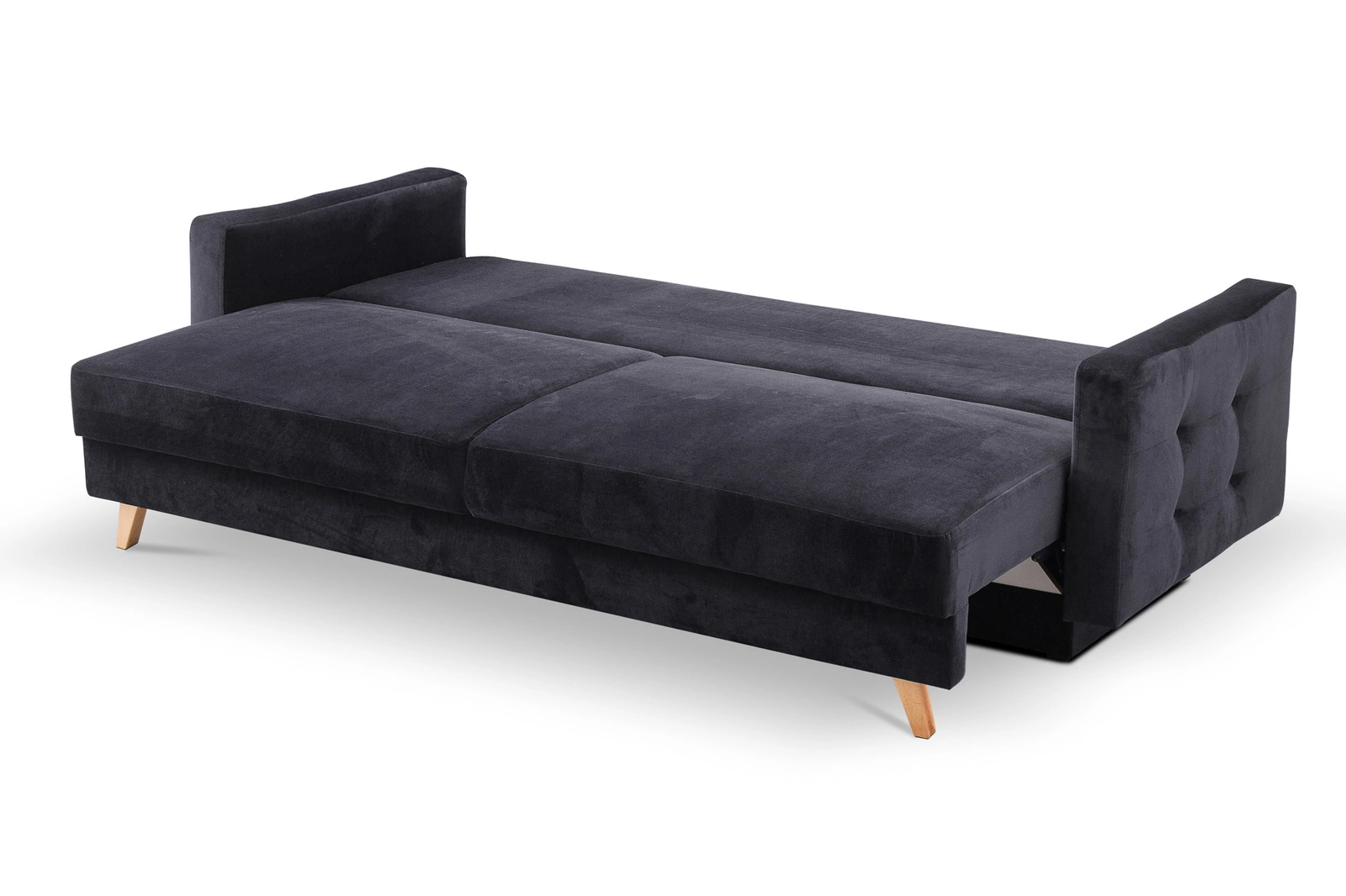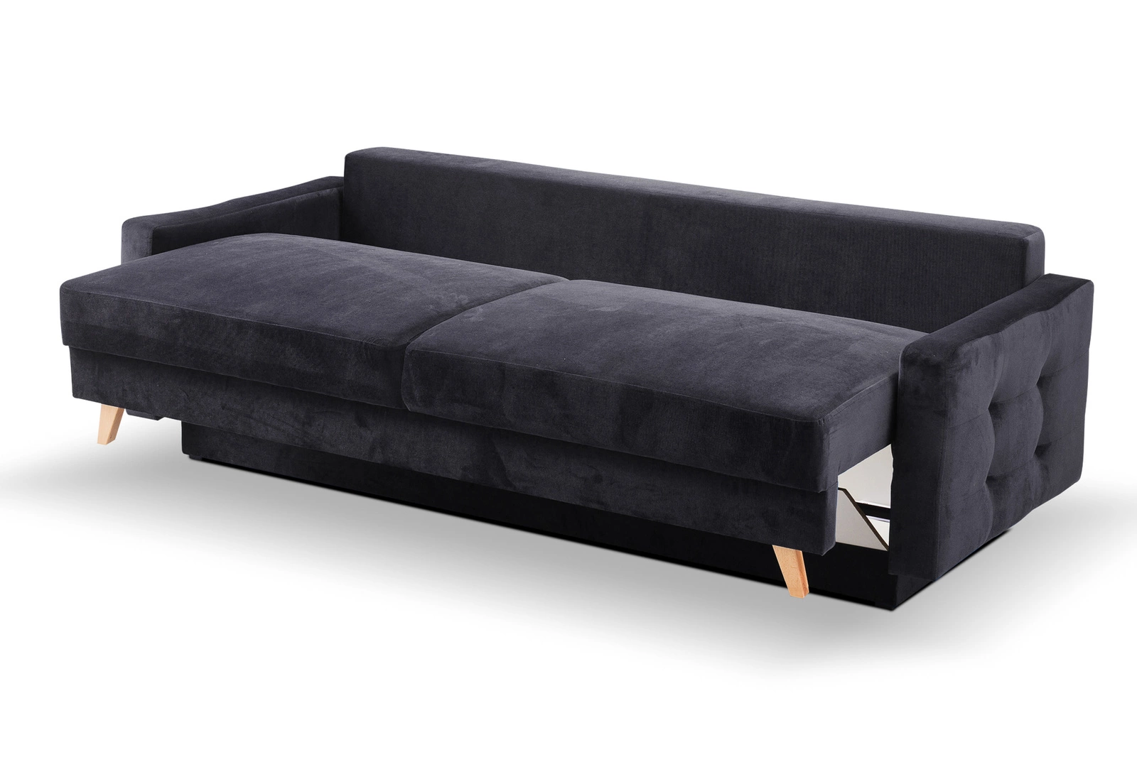 Rozkładana konstrukcja umożliwia szybkie i łatwe przekształcenie sofy w komfortowe miejsce do spania. To praktyczne rozwiązanie dla gości lub jako codzienne łóżko w kawalerce.