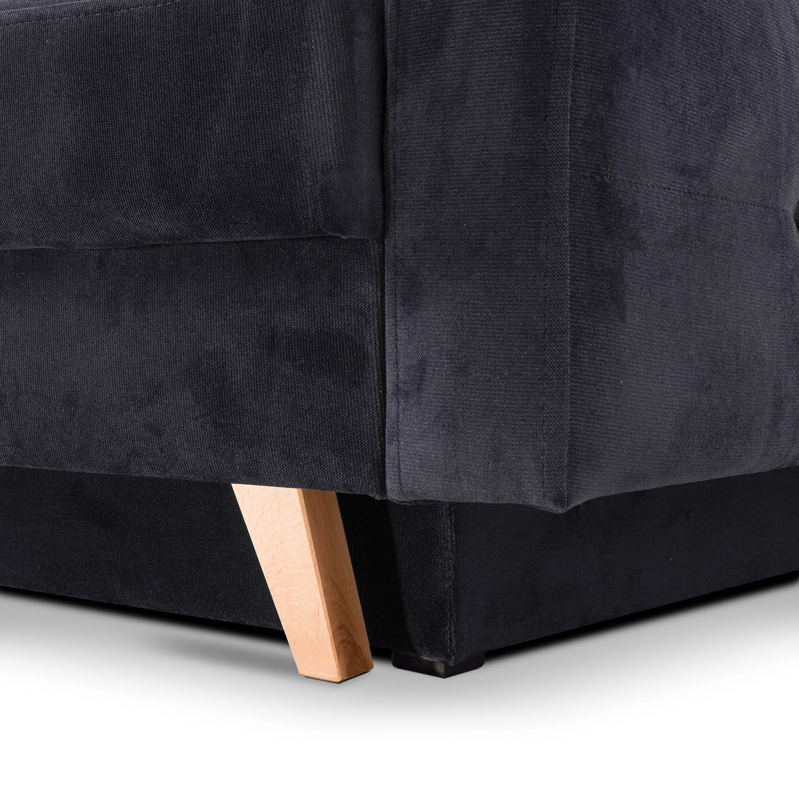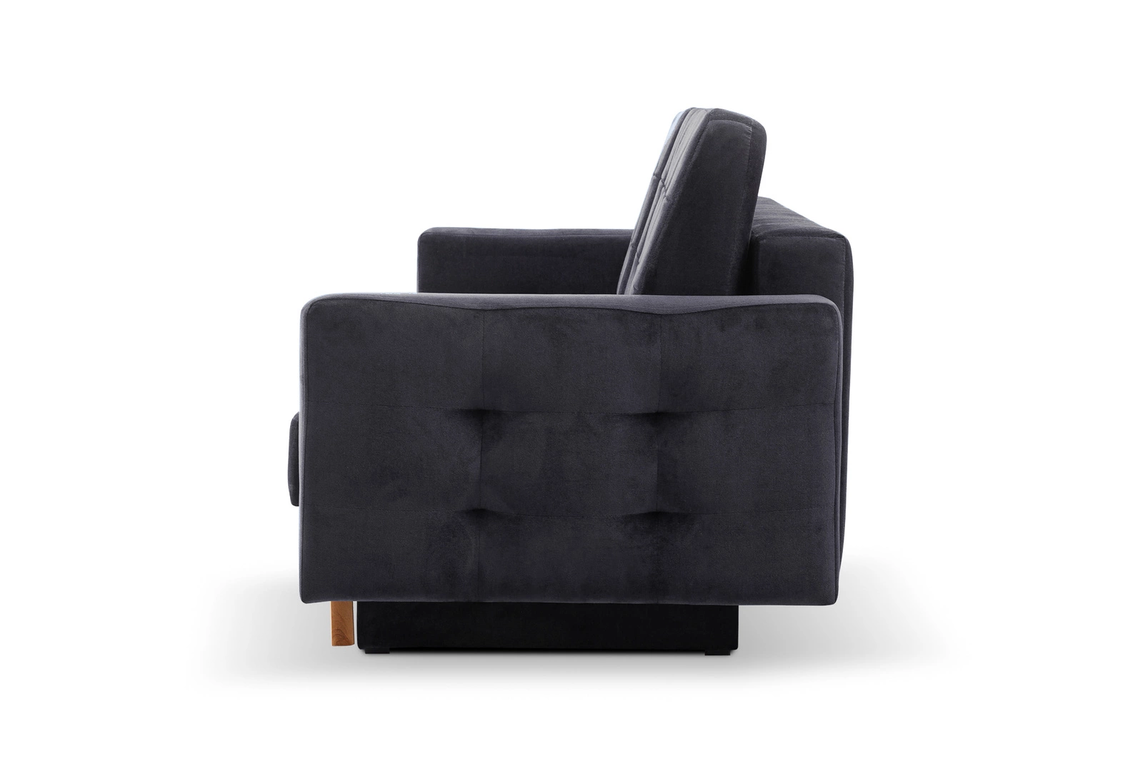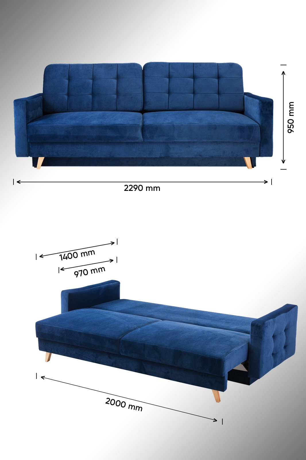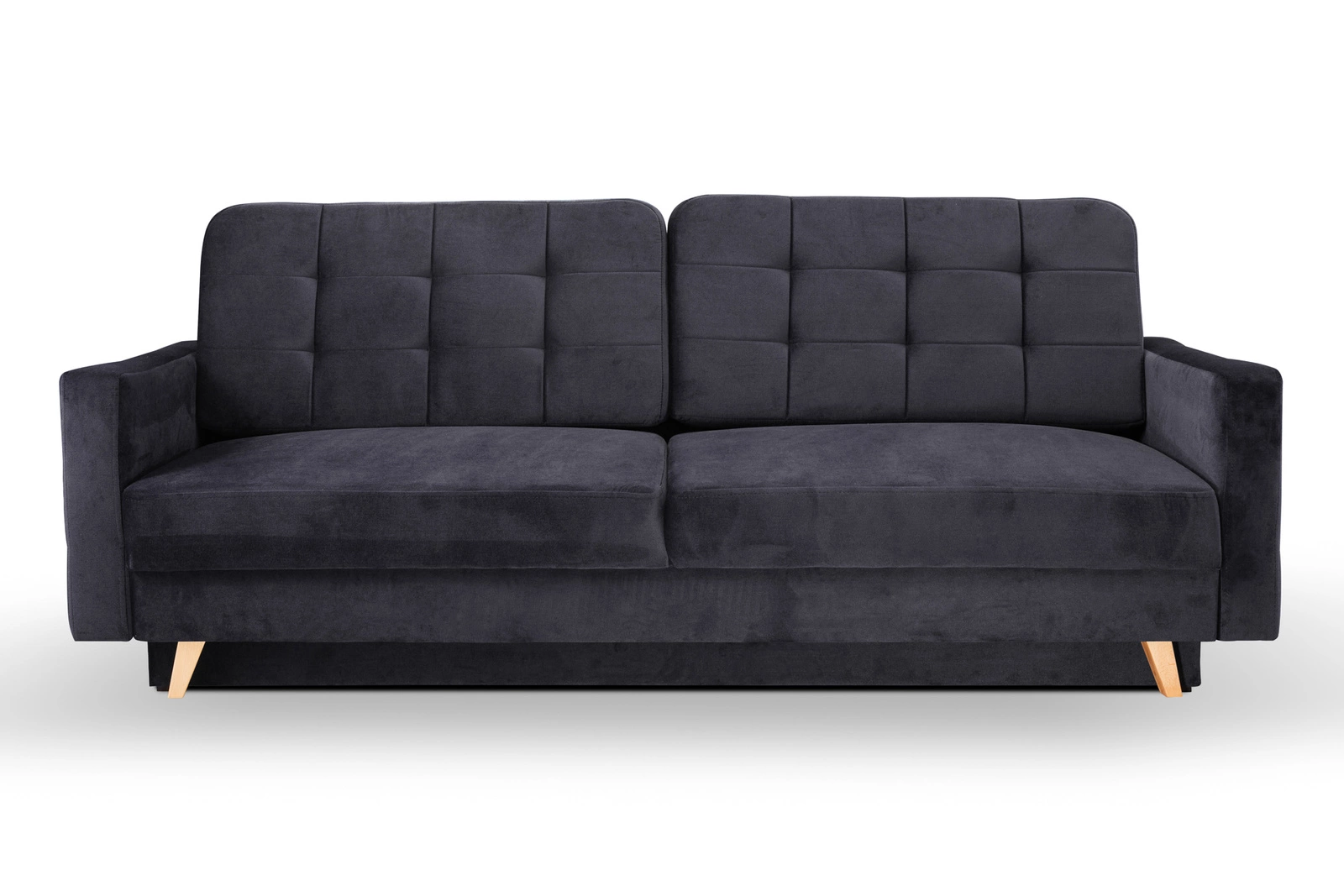 Rozkładana konstrukcja umożliwia szybkie i łatwe przekształcenie sofy w komfortowe miejsce do spania. To praktyczne rozwiązanie dla gości lub jako codzienne łóżko w kawalerce.