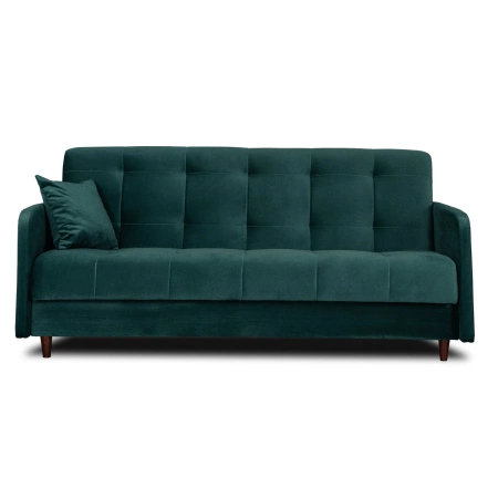 - Sofa rozkładana Tivoli w kolorze butelkowej zieleni to połączenie eleganckiego designu i praktycznej funkcji spania. Dzięki miękkiej tkaninie, pikowanemu oparciu i pojemnikowi na pościel, zapewnia komfort i styl w każdym wnętrzu.