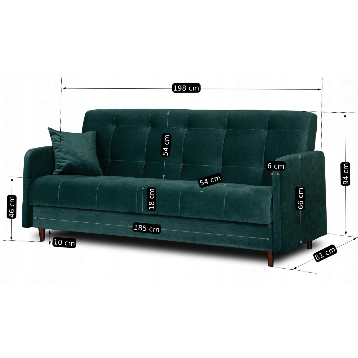 Wymiary: szer. 198 cm, głęb. 81 cm, wys. 94 cm – kompaktowa, ale przestronna
