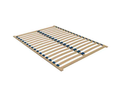 - Listwy przymocowane są do ramy za pomocą trwałych, elastycznych uchwytów z tworzywa sztucznego w kolorze niebieskim, które umożliwiają cichą pracę stelaża podczas użytkowania.