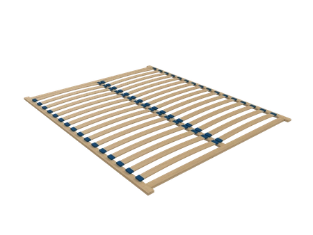 - Listwy przymocowane są do ramy za pomocą trwałych, elastycznych uchwytów z tworzywa sztucznego w kolorze niebieskim, które umożliwiają cichą pracę stelaża podczas użytkowania.