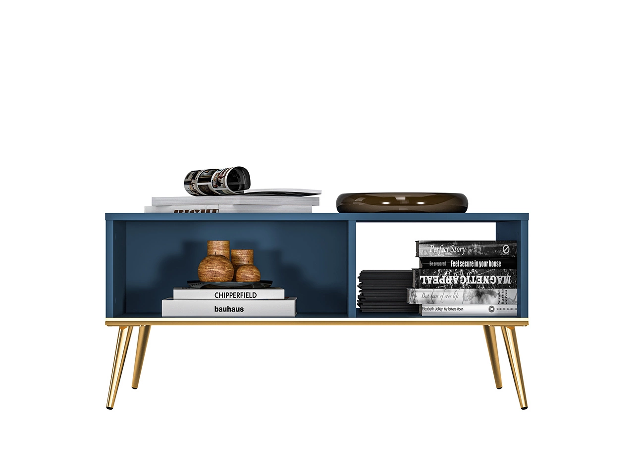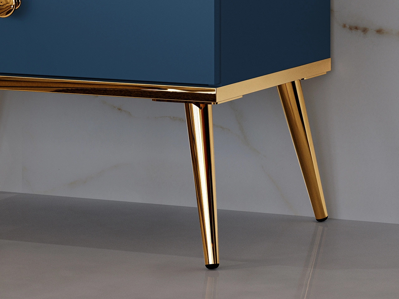 Stolik kawowy MARINE 07 wyróżnia się nowoczesnym wyglądem, który doskonale wpisuje się w aktualne trendy wnętrzarskie. Połączenie ciemnego błękitu z prostą formą nadaje mu elegancki i luksusowy charakter. Idealnie komponuje się z innymi meblami z kolekcji MARINE, tworząc spójną i harmonijną aranżację salonu.