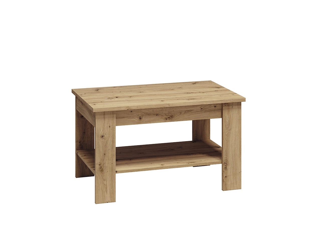 - Stolik kawowy prostokątny w dekorze dąb artisan wnosi do wnętrza naturalne ciepło i funkcjonalność. Dzięki dodatkowej półce zachowasz porządek, a klasyczny design dopełni aranżację każdego salonu.