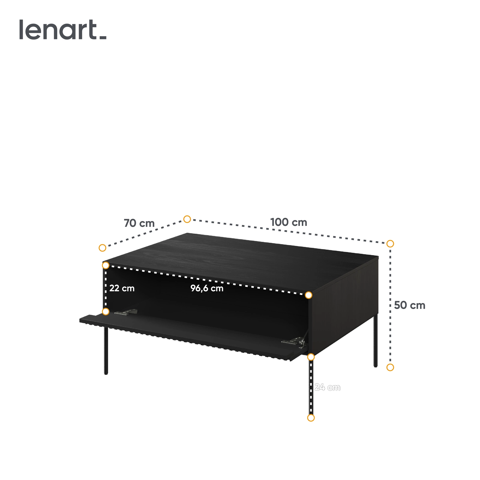 Stolik wykonany został z wysokiej jakości materiałów, odpornych na codzienne użytkowanie. Puszkowy zawias typu clipowy zapewnia niezawodne działanie, a precyzyjne wykończenia gwarantują trwałość i estetykę przez lata.