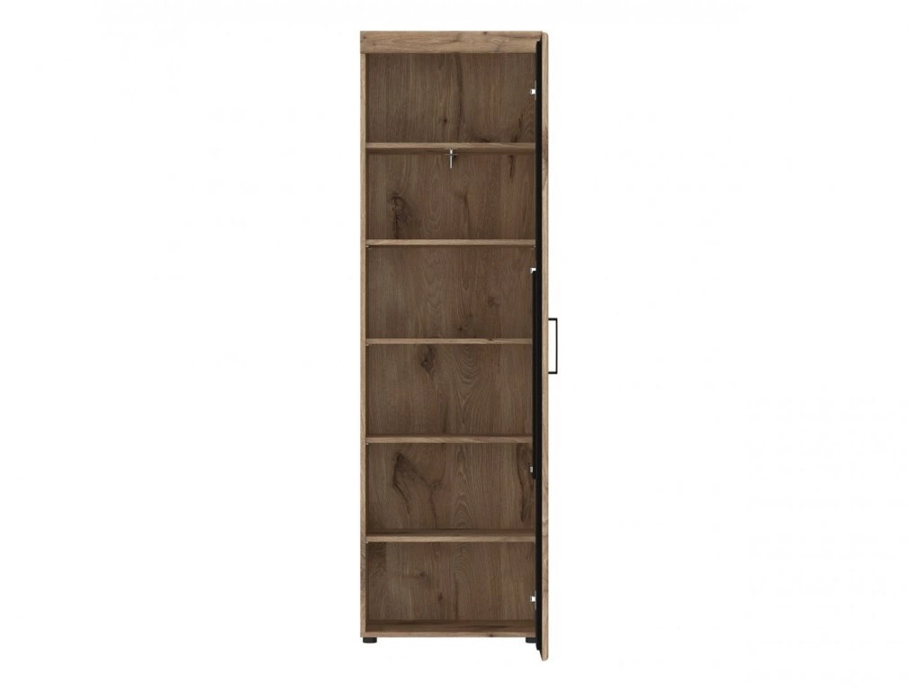 Bieliźniarka została wyposażona w jedne drzwi, za którymi kryją się cztery pojemne przegrody, umożliwiające uporządkowane przechowywanie ubrań, bielizny czy innych akcesoriów. Dodatkowo, trzy bezuchwytowe szuflady zapewniają dodatkową przestrzeń na drobniejsze elementy garderoby, zachowując przy tym estetyczny wygląd mebla.