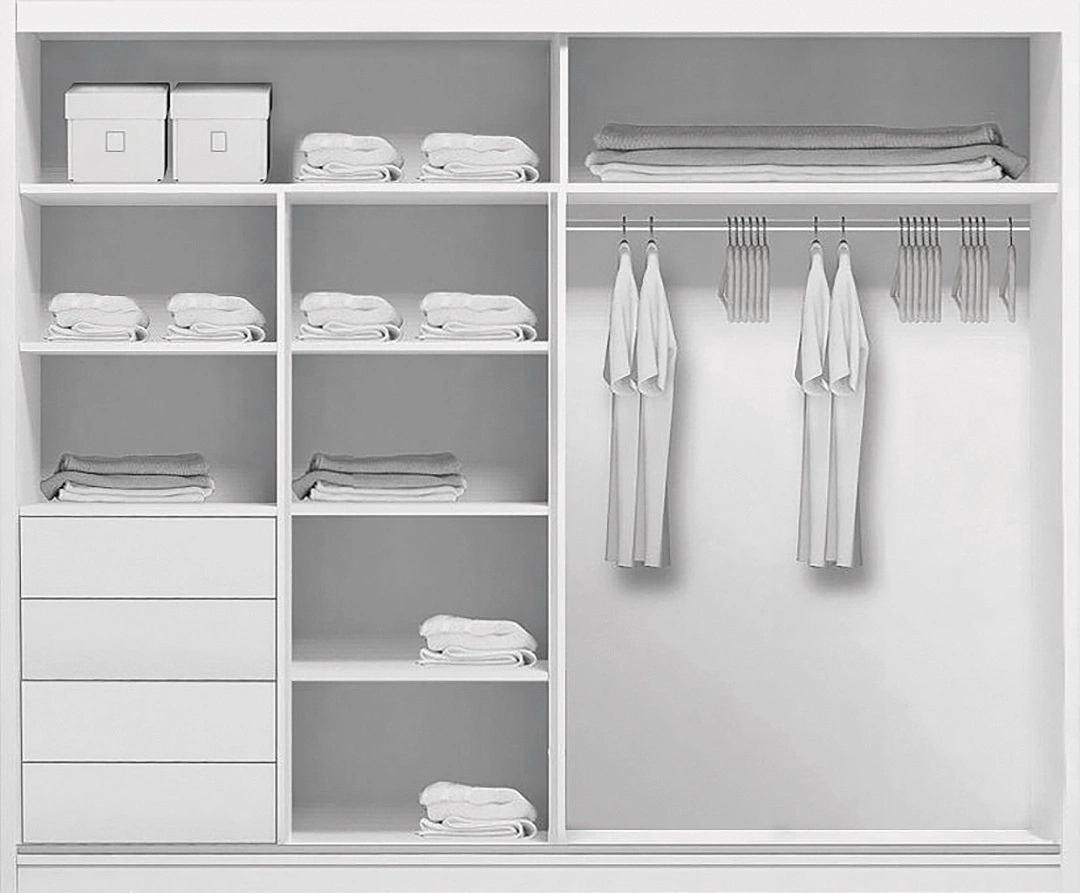 duża ilość półek, drążek oraz trzy szuflady gwarantujące dużą pojemność szafy.