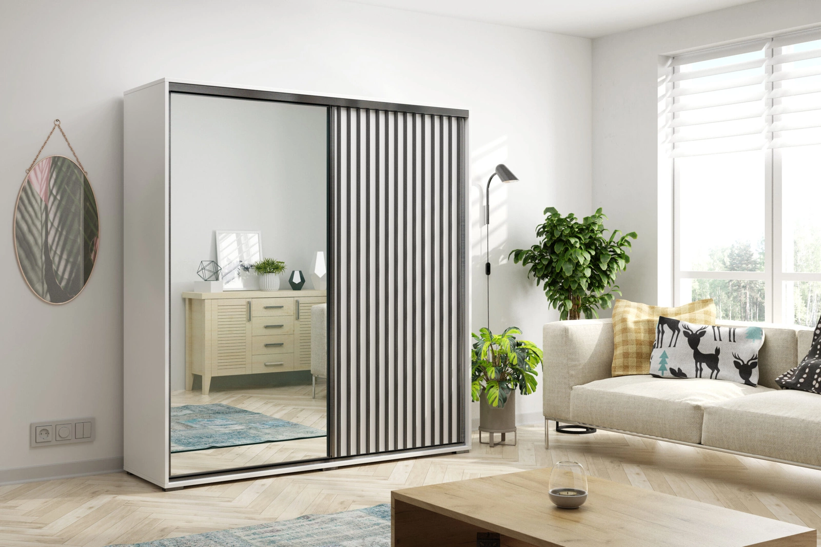Szafa przesuwna biała z lustrem, lamelami do sypialni Atena 200 cm