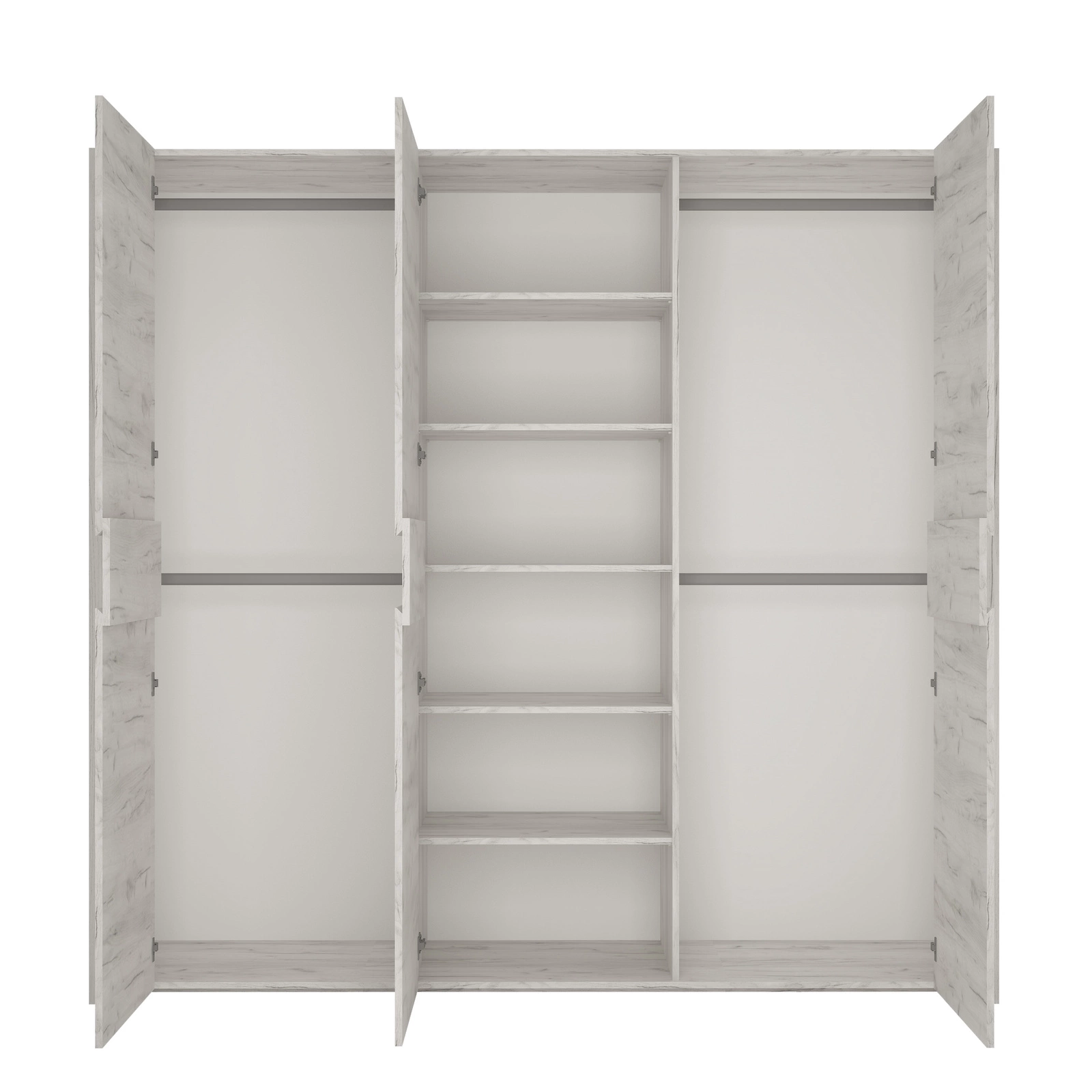 - Do swej dyspozycji masz wewnątrz mebla cztery drążki na ubrania oraz pięć półek.