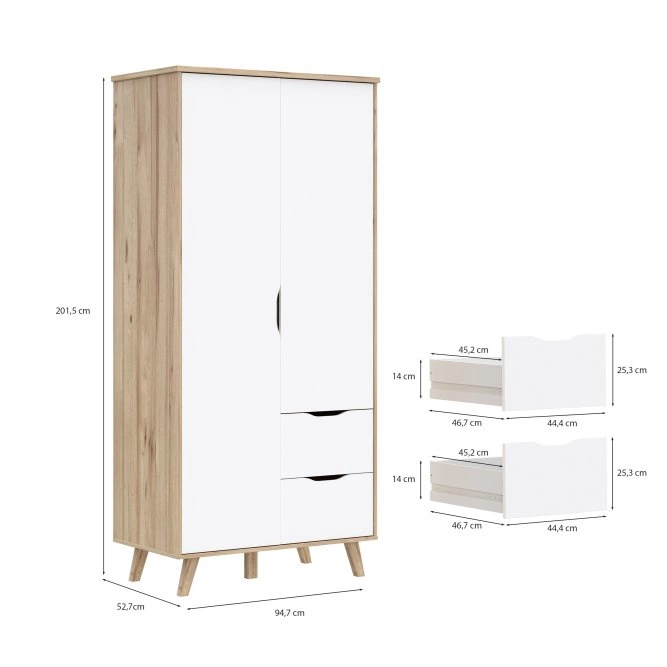 Szafa ubraniowa dwudrzwiowa uchylna z szufladami VANKKA