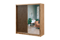 - Szafa przesuwna Dalate sprawdzi się w aranżacji sypialni przedpokoju w loftowym stylu. Wnętrze szafy podzielono na 2 równe części. Mebel wyposażony w 2 drążki na ubrania oraz 2 półki stałe tworzy miejsce do przechowywania odzieży i dodatków.