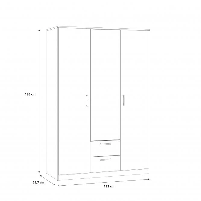 Wymiary: szerokość 122 cm, wysokość 185 cm, głębokość 52,7 cm,