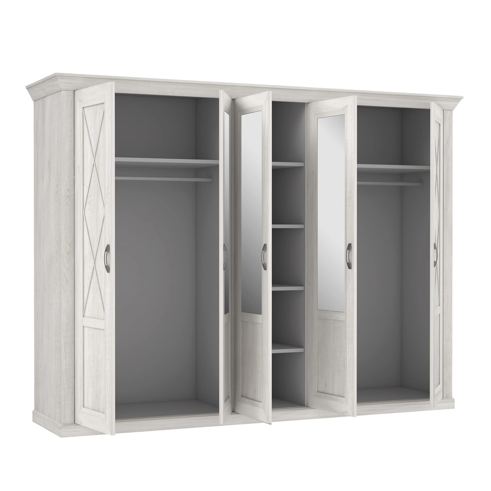- Pojemna szafa z lustrem Kashmir w kolorze Pinia Biała to stylowe i praktyczne rozwiązanie do każdej sypialni. Duże lustra optycznie powiększają wnętrze, a klasyczny design i solidna konstrukcja sprawiają, że to doskonały wybór na lata.