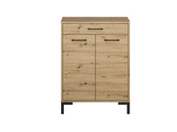 - Nowoczesna komoda Nevio 02 w stylu skandynawskim to połączenie jasnego dębu i białych frontów, z dwoma szufladami i półkami. Kompaktowa, a jednak pojemna – idealna do salonu, sypialni lub przedpokoju!