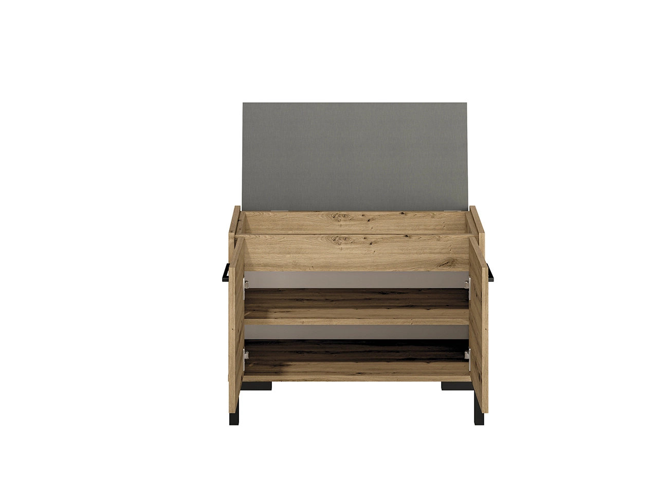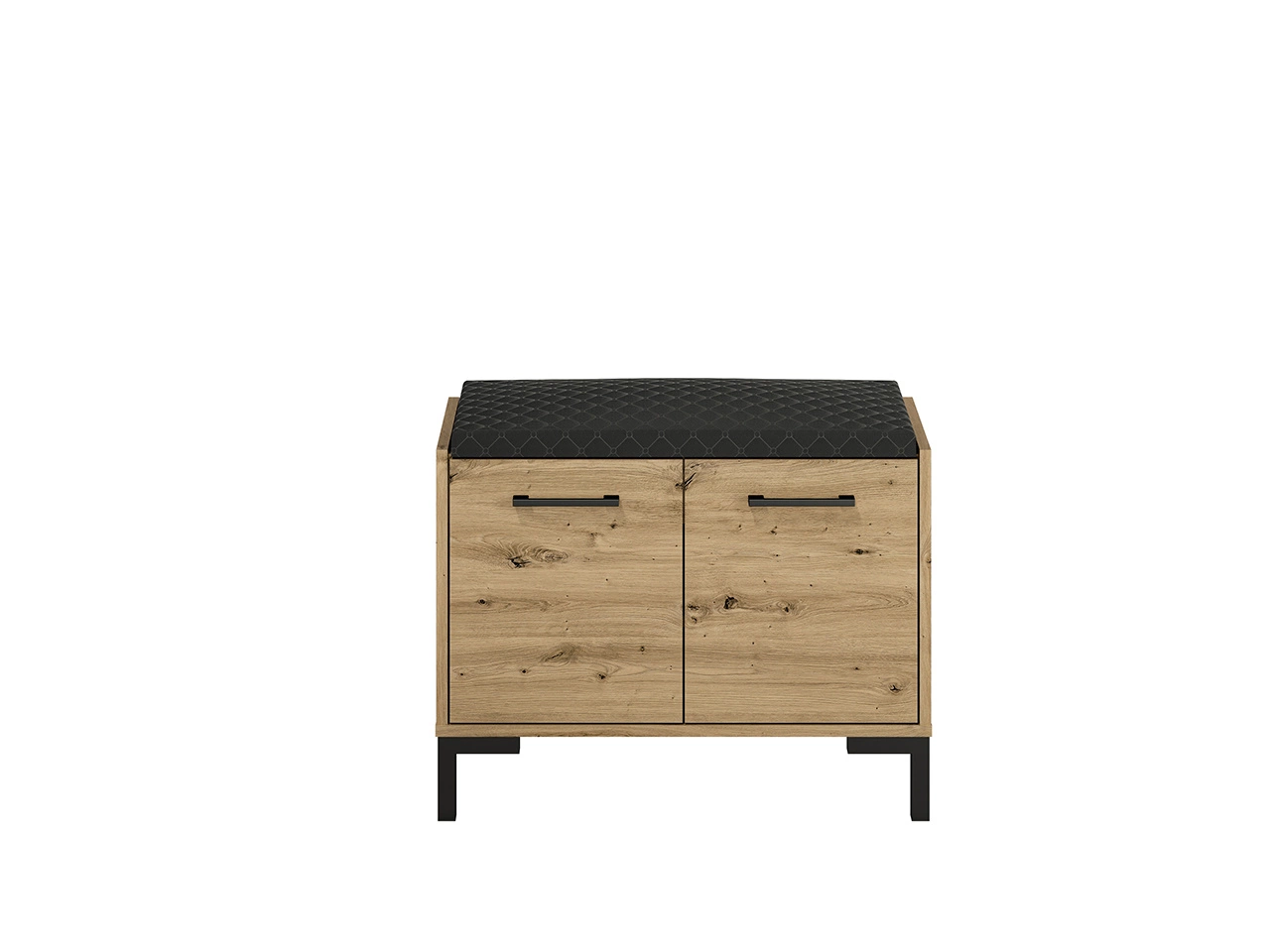 - Szafka na buty z siedziskiem w dekorze Dąb Artisan to stylowy i praktyczny mebel do przedpokoju, wyposażony w dwie zamykane szafki i miękkie, tapicerowane siedzisko. Kompaktowe wymiary i nowoczesne detale sprawiają, że idealnie łączy funkcjonalność z eleg