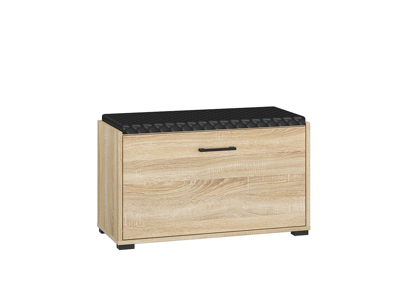 - Szafka na buty Caro 04 to praktyczny mebel z funkcją siedziska, idealny do przedpokoju. Wykonana z trwałej płyty laminowanej w kolorze sonoma jasna, wyposażona w wygodne czarne siedzisko i uchylny front ułatwiający przechowywanie obuwia.