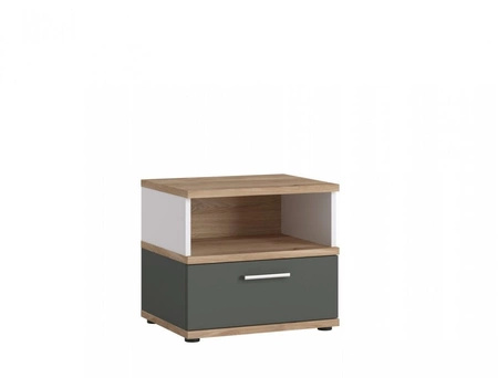 Szafka nocna z serii Twenty posiada efektowny front szuflady w kolorze Szarego Grafitu (szuflada z pełnym wysuwem). Mebel doskonale pasuje do łóżka pojedynczego z kolekcji Twenty oraz pozostałych jej elementów.
