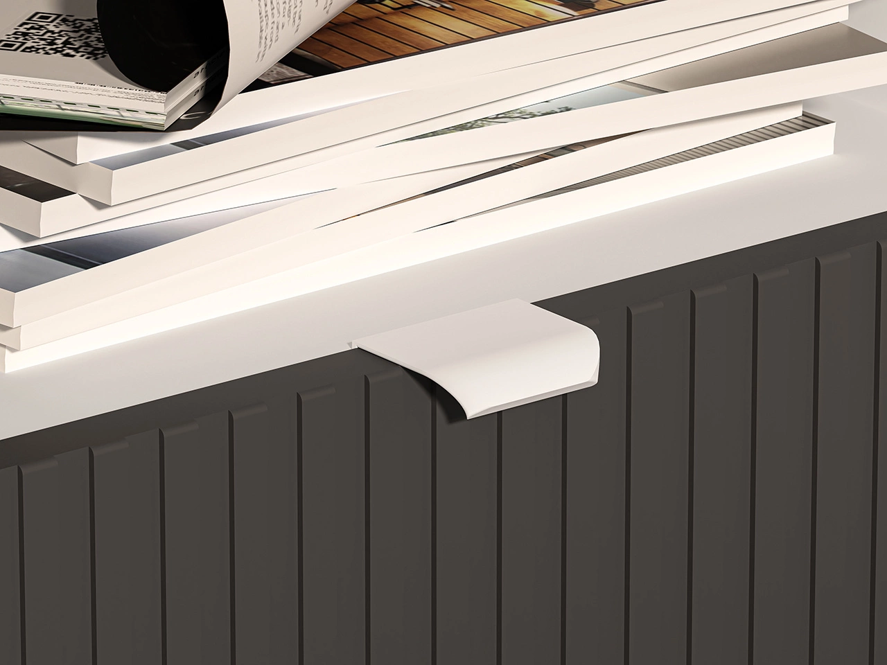 Szafka nocna Torino 09 łączy nowoczesny design z praktycznym zastosowaniem – wykonana z trwałej płyty laminowanej odpornej na zarysowania, wilgoć i wysoką temperaturę, zabezpieczona obrzeżem ABS, które chroni krawędzie i zwiększa żywotność mebla. Front w eleganckim zestawieniu Biały + MDF Grafit Mat oraz korpus Biały + Dąb Castello idealnie wpisuje się w nowoczesne i minimalistyczne wnętrza, nadając sypialni lekkości oraz stylowego charakteru.