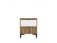 Stylowe i praktyczne rozwiązanie do każdej sypialni. Szafka nocna Winnie zachwyca naturalną kolorystyką oraz minimalistycznym designem, który idealnie wpisuje się w nowoczesne i klasyczne aranżacje. Połączenie ciepłego odcienia drewna z białymi frontami dodaje wnętrzu elegancji i lekkości.