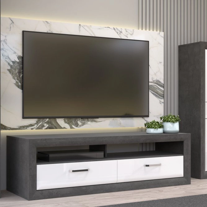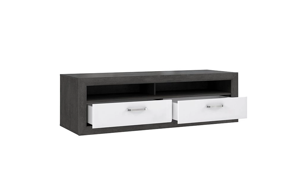 - Szafka RTV z kolekcji lennox new, w eleganckim połączeniu betonu i bieli. Posiada przestronne szuflady, idealna do przechowywania sprzętu RTV i innych akcesoriów. Doskonała do nowoczesnych wnętrz.