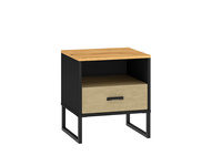 - Szafka RTV URSO 08 która łączy ciepły odcień dębu craft złotego z elegancką czernią. Wyposażona w pojemne szuflady i otwartą wnękę na sprzęt elektroniczny, świetnie sprawdzi się w salonie jako praktyczne centrum multimedialne.