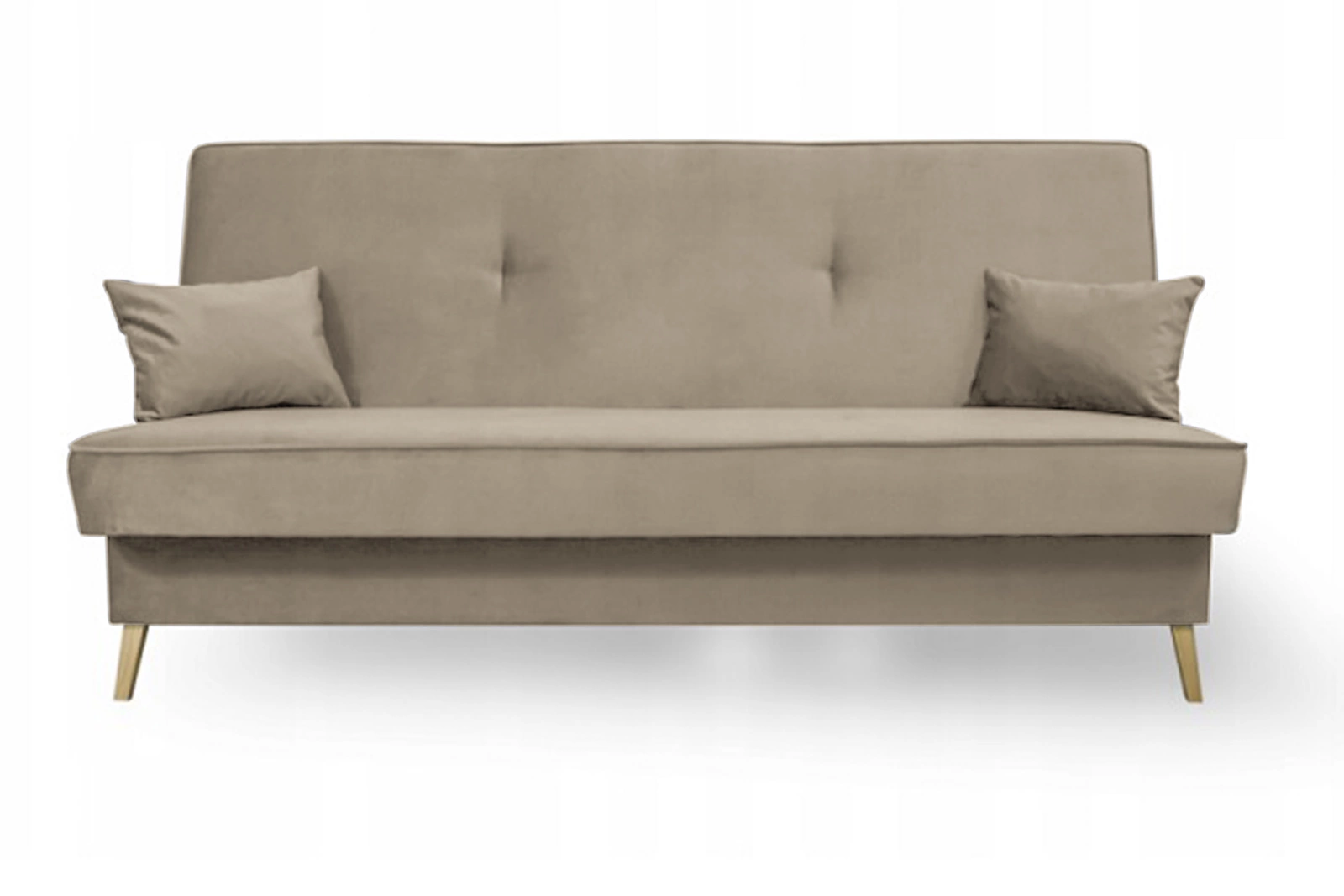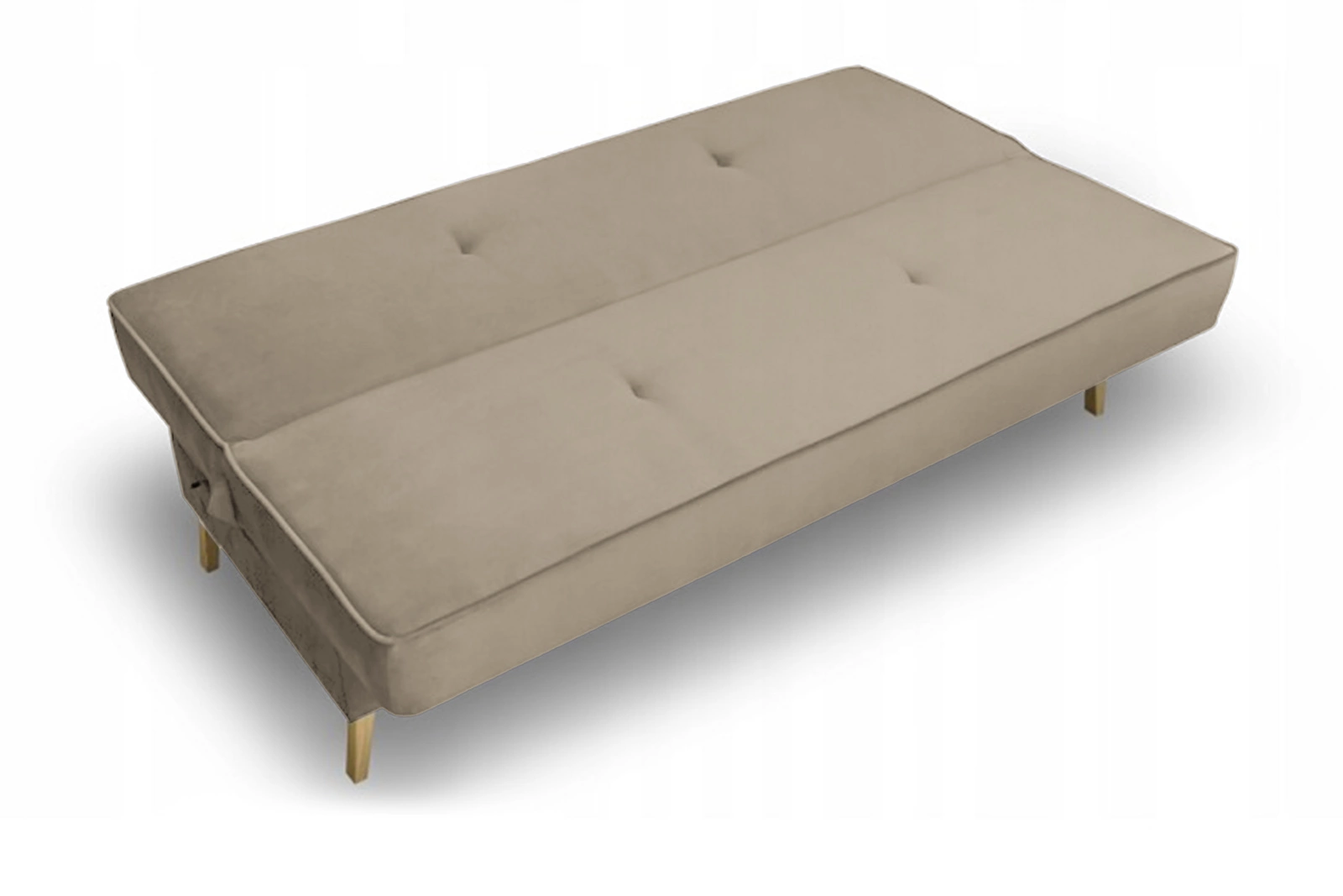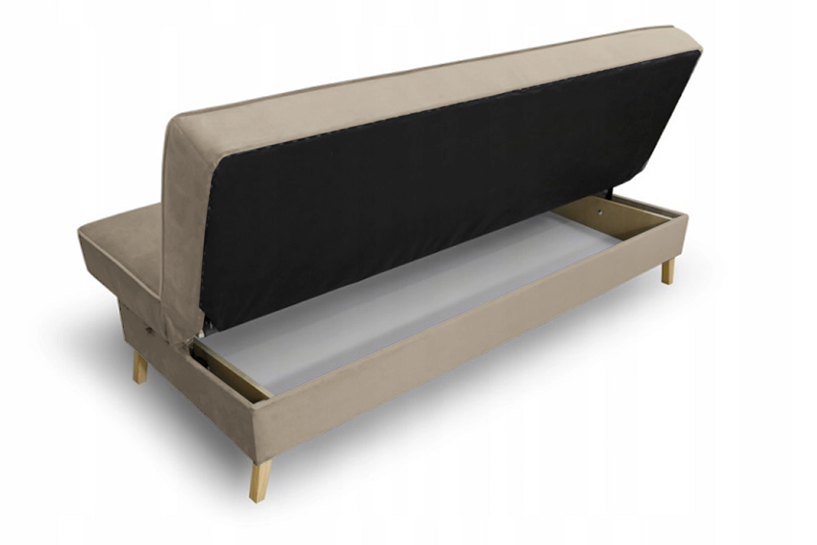 Dzięki beżowemu odcieniowi tapicerki mebel prezentuje się niezwykle elegancko i pasuje do wielu aranżacji. Drewniane nóżki dodają lekkości, a prosty, geometryczny kształt sprawia, że wersalka wygląda schludnie i ponadczasowo.