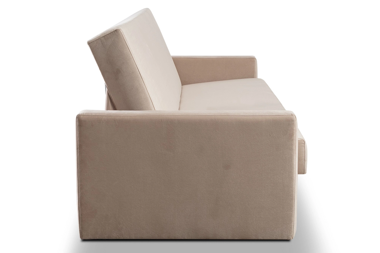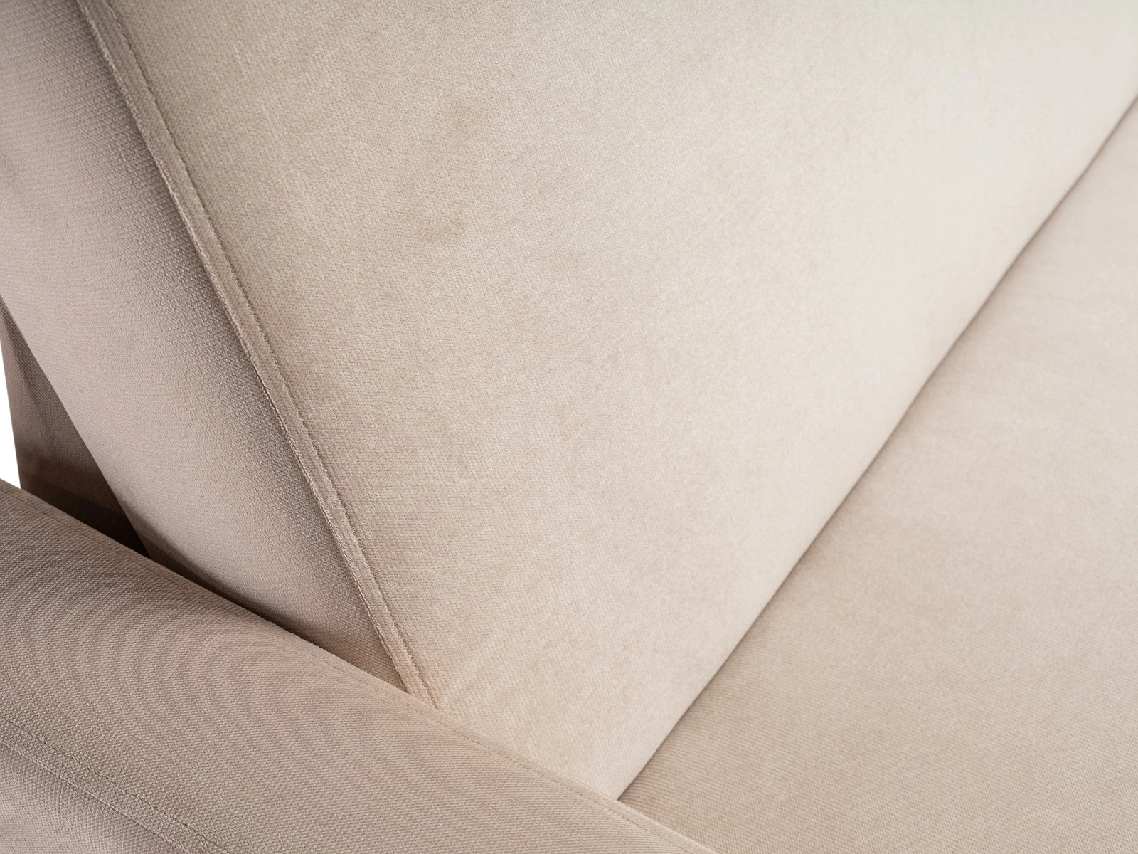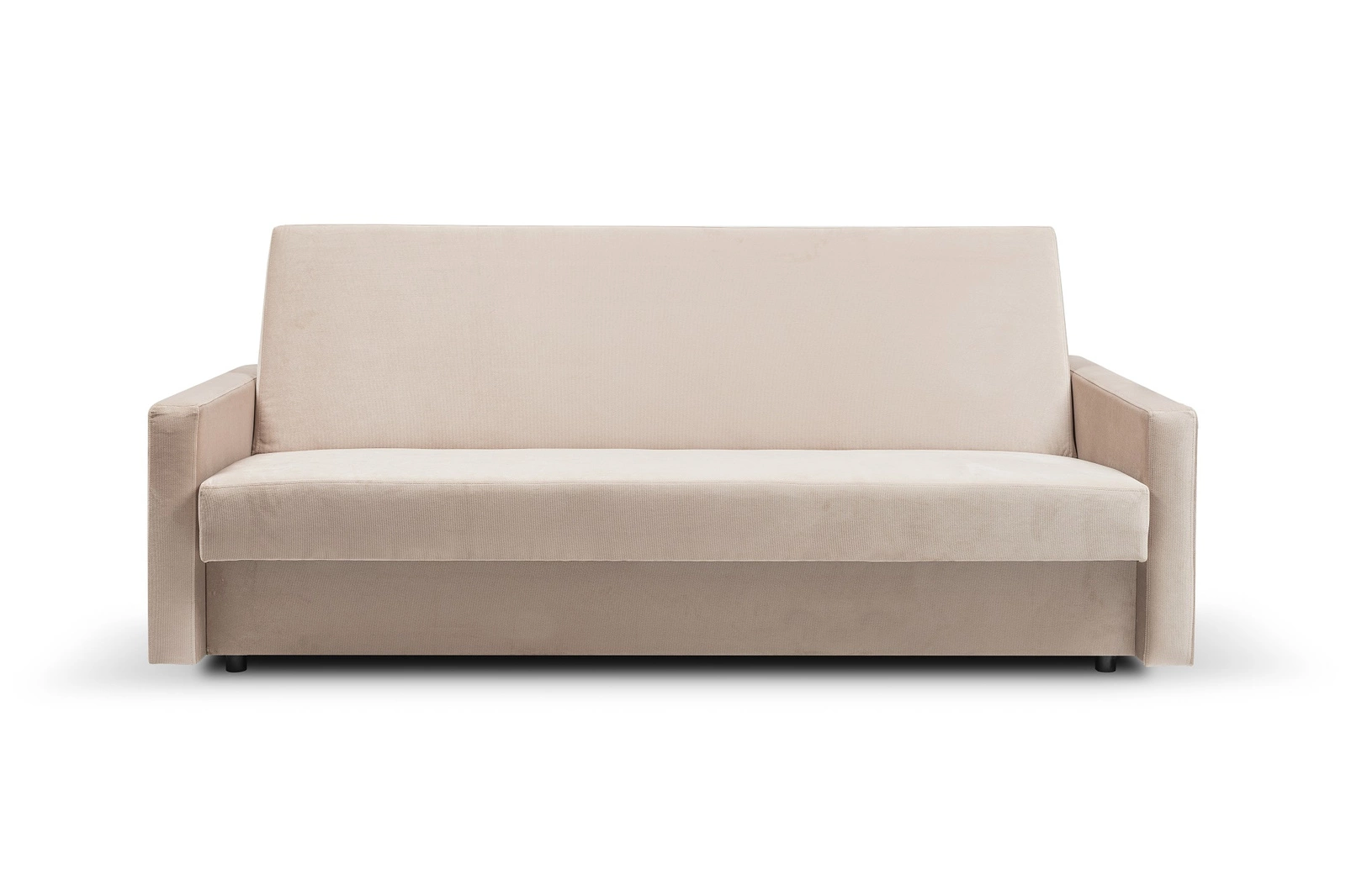 Miękkie i sprężyste siedzisko w połączeniu z odpowiednio wyprofilowanym oparciem gwarantują maksymalny komfort. Beżowa tkanina tapicerska jest przyjemna w dotyku i odporna na ścieranie, co sprawia, że kanapa doskonale sprawdza się w codziennym użytkowaniu. Wersalka rozkładana idealna na każdą okazję