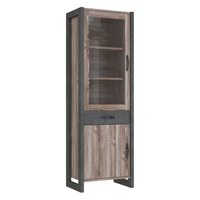 Mebel został wykonany z wysokiej jakości płyty wiórowej laminowanej, co zapewnia odporność na zarysowania i wilgoć. Dodatkowym atutem jest zastosowanie hartowanego szkła, które zwiększa trwałość oraz bezpieczeństwo użytkowania. Dzięki zawiasom z cichym domykiem, korzystanie z witryny jest niezwykle komfortowe – zapomnij o trzaskających drzwiczkach!