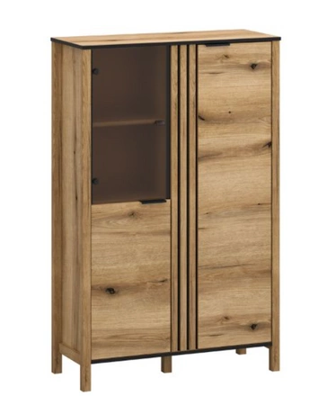 Dzięki swojemu uniwersalnemu designowi kolekcja mebli HELIX doskonale wpasowuje się w nowoczesne koncepcje aranżacji wnętrz. Witryna niska na nóżkach oferuje nie tylko funkcjonalne miejsce do przechowywania, ale także estetycznie atrakcyjne rozwiązania dla Twojego domu. Korpus oraz fronty wykonane zostały z wysokiej jakości płyty laminowanej, nadając im elegancki wygląd w kolorze dębu evok. Dodatkowym elementem ozdobnym są subtelne ryflowania, które nadają meblom niepowtarzalny charakter. Uchwyty wykonane z metalu w kolorze czarnym, dodają meblom nowoczesności. Witryna na nóżkach, czy to samodzielnie czy w zestawieniu z innymi elementami z kolekcji, z pewnością stworzy wyjątkową atmosferę w Twoim wnętrzu! Dodatkowo, istnieje możliwość dokupienia oświetlenia LED, które jeszcze bardziej podkreśli walory tej eleganckiej witryny.