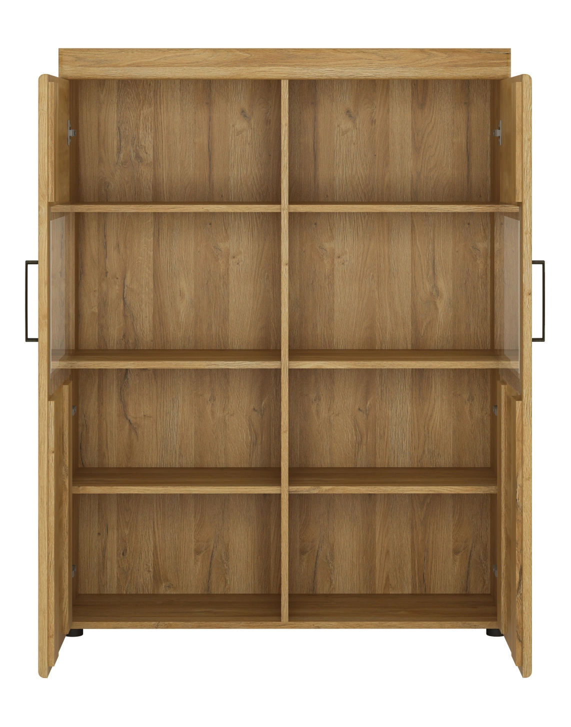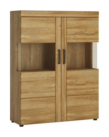 - Mniejsza witryna z kolekcji Cortina sprawdzi się świetnie w pomieszczeniach o różnej wielkości. Na uwagę zasługują przeszklenia zastosowane zarówno we frontach, jak i bokach witryny - nadają one lekkości i charakteru bryle.