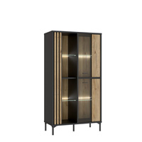 - Wąska witryna Joadakis, która doskonale pasuje do mniejszych przestrzeni, oferując funkcjonalność i elegancki wygląd. Wykonana w ciepłym odcieniu dębu Catania, z przeszklonymi drzwiami i przestronnymi półkami do wyeksponowania ulubionych przedmiotów.