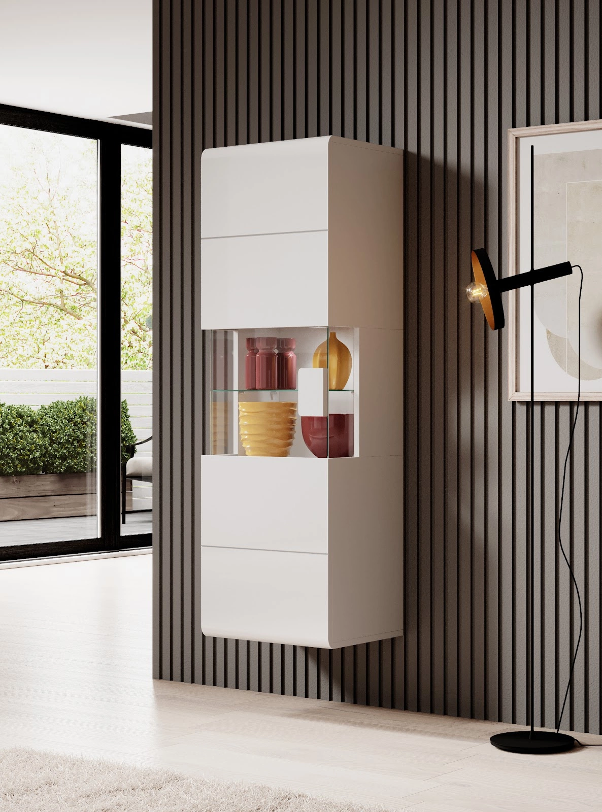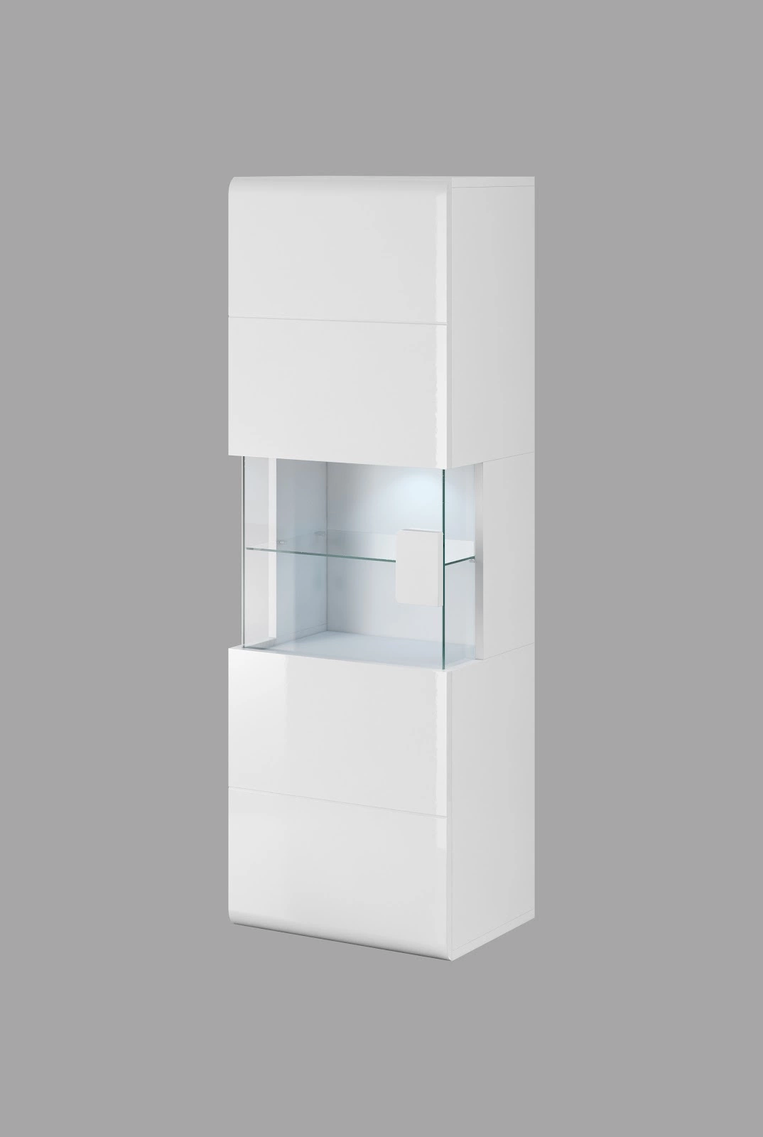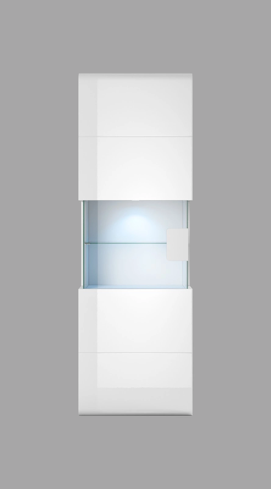 Witryna wisząca Toledo to stylowe rozwiązanie do nowoczesnego salonu, które łączy minimalistyczny design z praktycznymi funkcjami. Dzięki eleganckiemu połączeniu białego połysku i drewnianego akcentu, witryna wprowadza do wnętrza lekkość i harmonię.