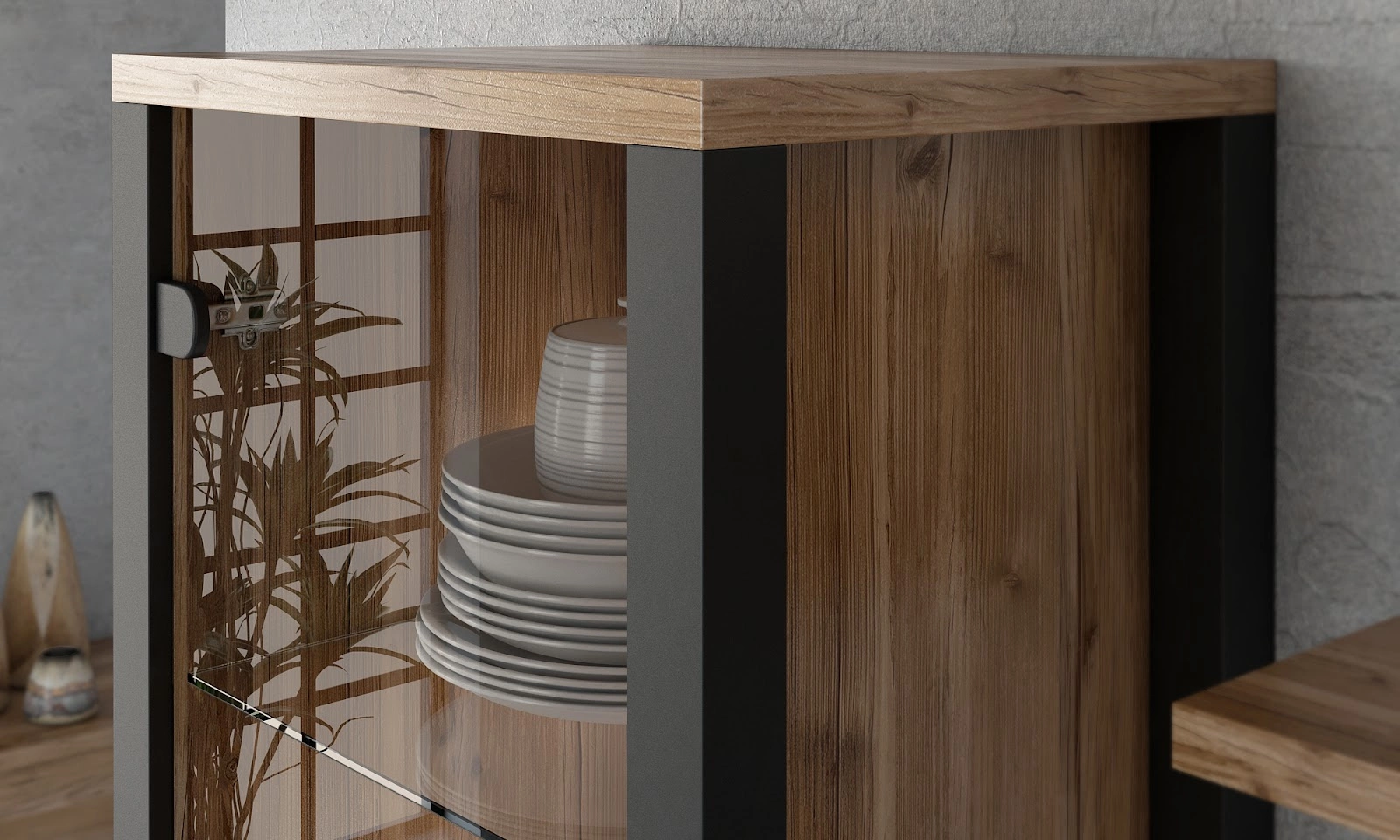 Wysoka witryna do salonu Olin WM – Appenzeller Fichte