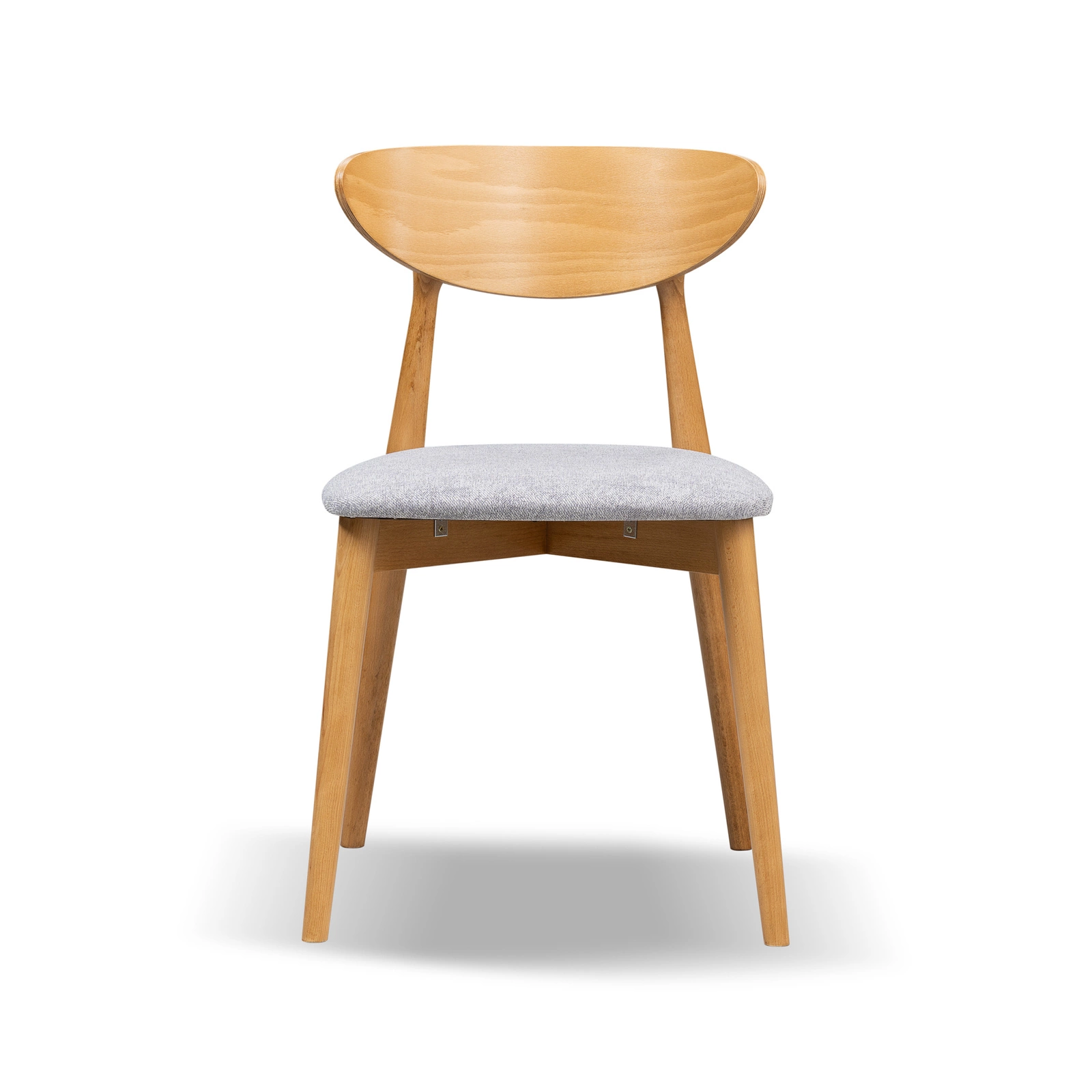 Zestaw wyróżnia się ponadczasową formą i subtelnym odcieniem jasnego dębu, który doskonale komponuje się z szarą tapicerką Lotus 11. Stół ma prostą, elegancką konstrukcję, a ergonomiczne krzesła Luis zapewniają wygodę podczas codziennych posiłków i spotkań z bliskimi.