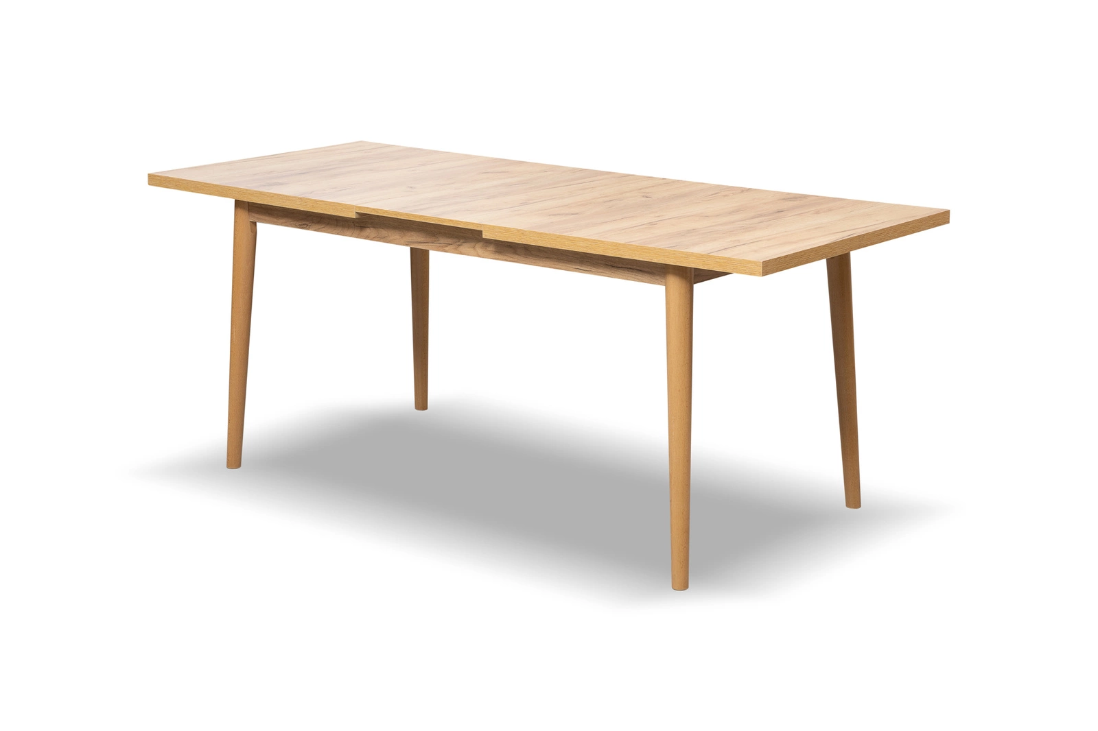 Każdy element zestawu został wykonany z dbałością o detale. Stabilny stół posiada możliwość rozkładania – dzięki wkładce +40 cm z łatwością dopasujesz go do liczby gości. Krzesła charakteryzują się solidną konstrukcją, odpowiednim wyprofilowaniem oparcia oraz miękkim siedziskiem pokrytym trwałą tkaniną.