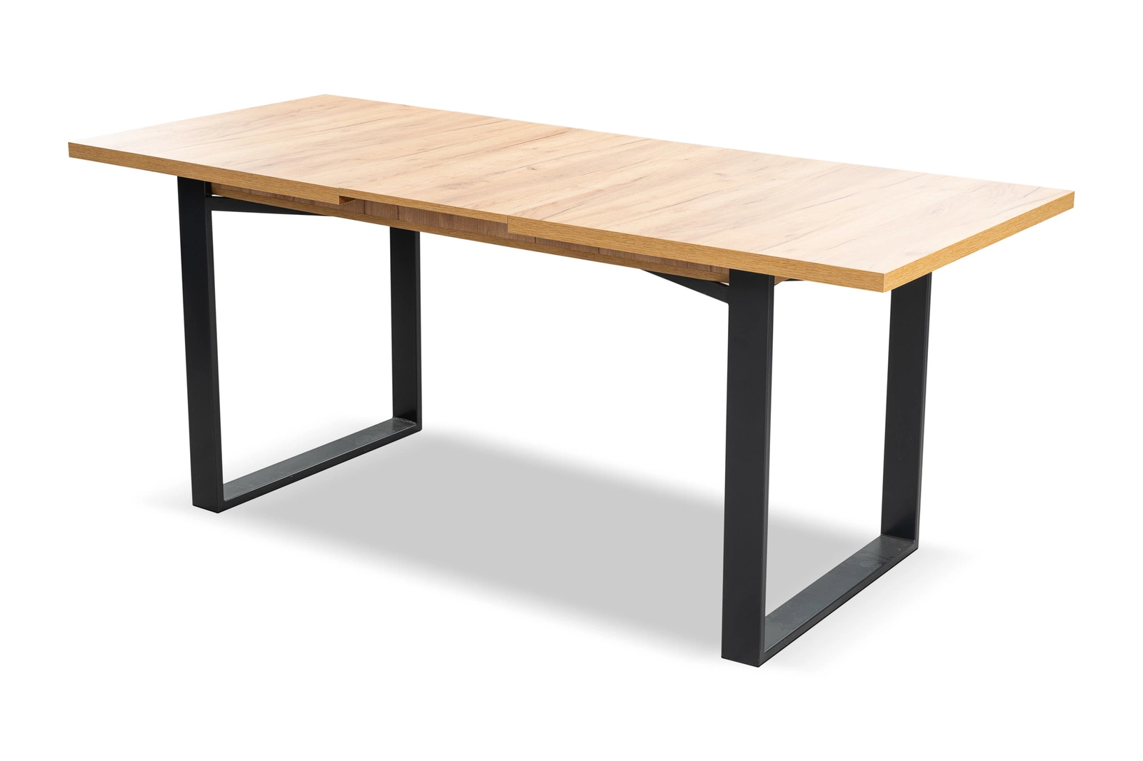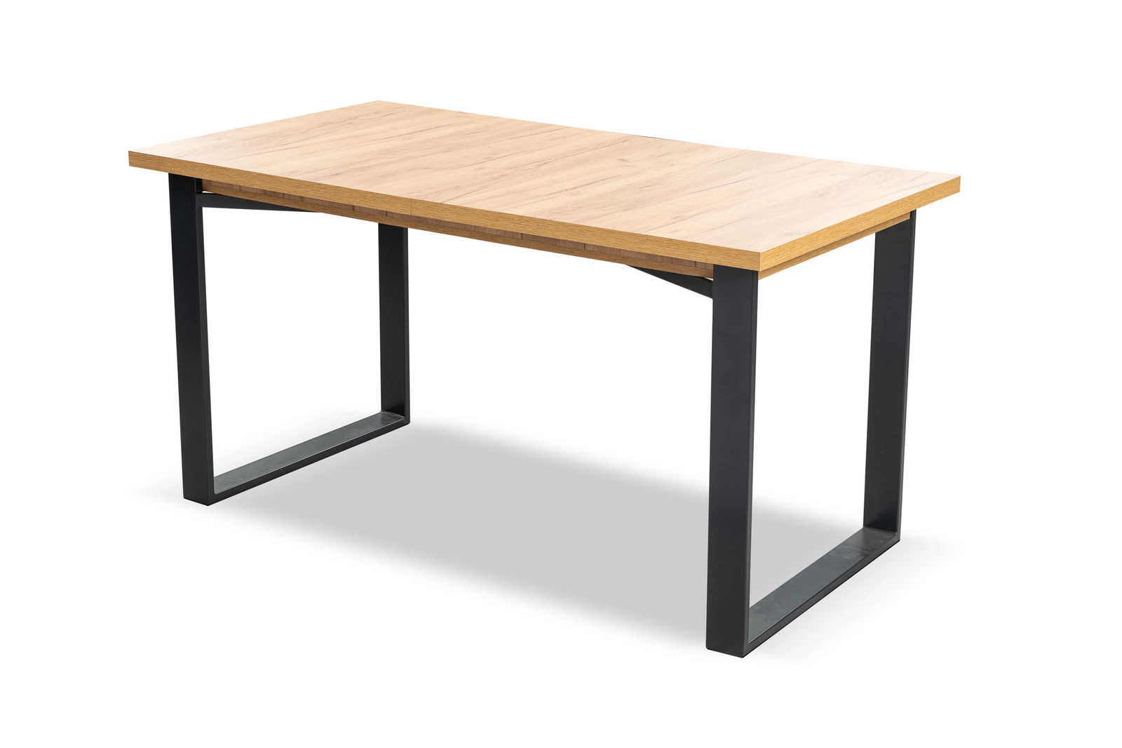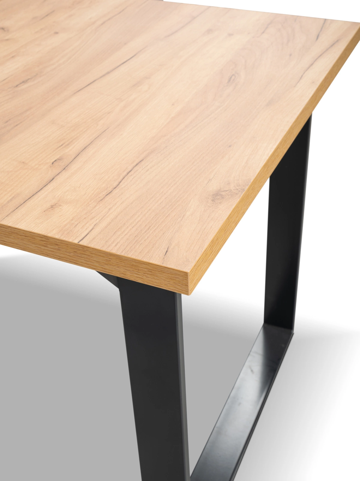 Stół wspiera się na solidnych metalowych nogach, malowanych proszkowo na czarno – to gwarancja trwałości i modnego, loftowego charakteru.