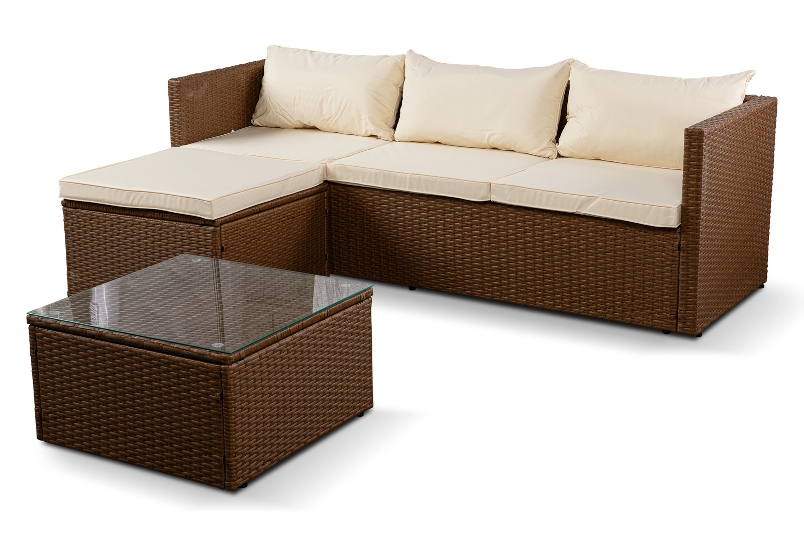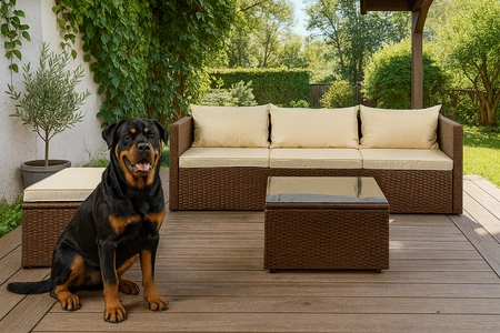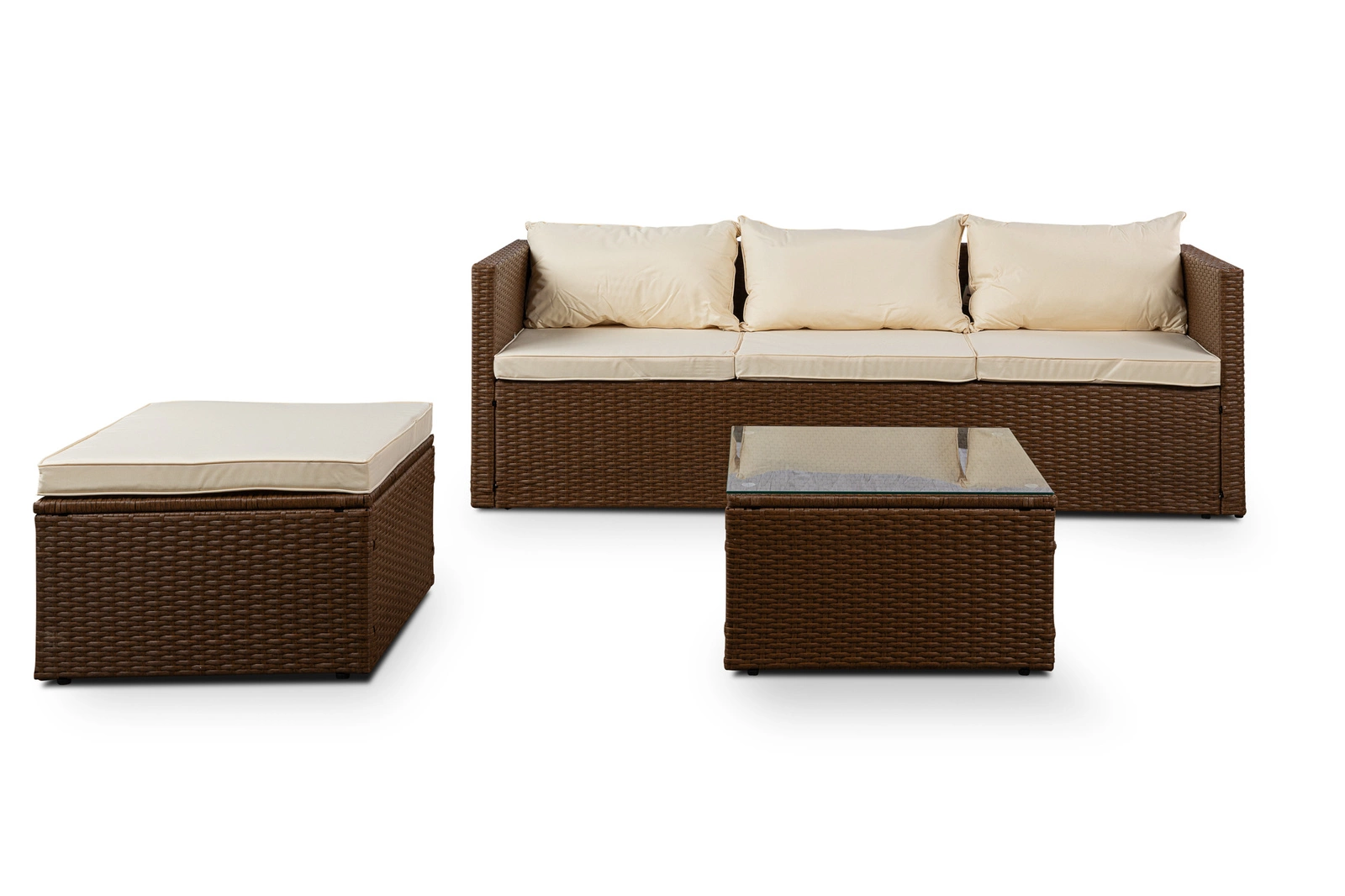 Zestaw ogrodowy sofa 3osobowa z pufa i stolik