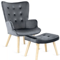 Fotel welurowy wypoczynkowy z podnóżkiem beżowy