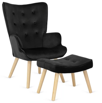 Fotel welurowy nowoczesny z podnóżkiem do salonu czarny
