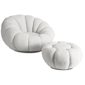 Fotel wypoczynkowy obrotowy z pufą do czytania Pettit