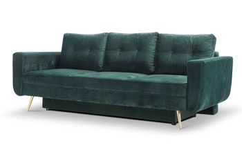 Sofa trzyosobowa, kanapa rozkładana z funkcja spania zielona Skandynawia