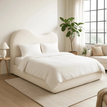 Łóżko tapicerowane beżowe z podnoszonym stelażem 180x200 Talinn